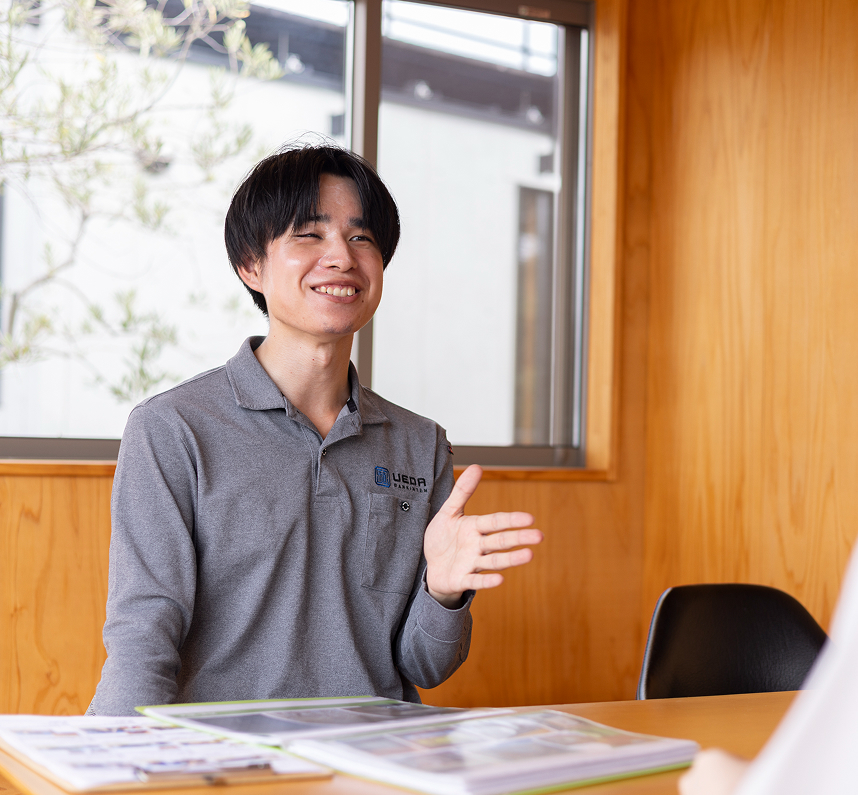 就職活動をはじめた当初は、IT関連の仕事に絞って候補を検討していました。地元岡山で働きたいという想いもあったので、転勤がないことも重視していました。しかし、就職活動を進めるうちに営業職に関心を持つようになり、視野を広げていきました。植田板金店に出会ったのはそんな時です。
