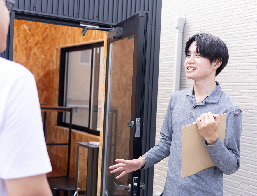まず、住宅の屋根工事を中心とした事業に安定した需要があり、多くの人の暮らしに直接役立つ仕事である点に魅力を感じました。また、面接前に展示場の『ひとやね』を見学したところ、スタイリッシュな空間に心が躍ったことを今でも覚えています。そして、対応してくださった先輩社員の気さくな人柄にふれ、「こんなアットホームな会社で働きたい」と感じたことが入社の理由です。