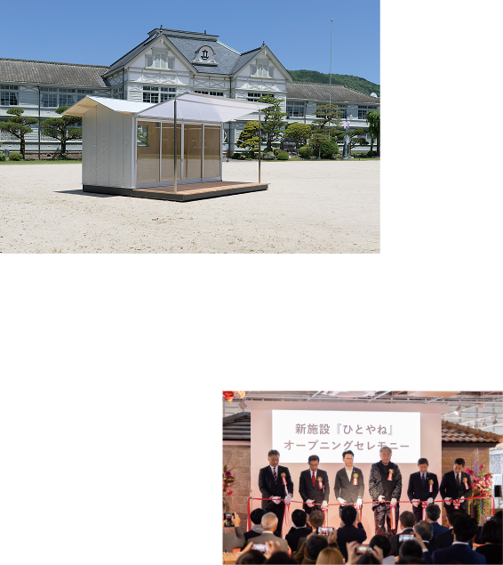 プロジェクトは大きな宣伝効果を生み、小屋事業にとどまらず屋根や外壁工事の受注にもつながり、2022年の売上は現社長就任時の3倍を記録。数字面だけでなく、社員全員に積極性と自信が芽生え、会社全体に活気があふれるようになった。隈さんとの協働はこの後も続き、2024年1月には日本最大級の規模を誇る屋根・小屋の展示場&コワーキングスペース『ひとやね』がオープンした。