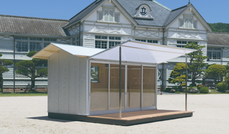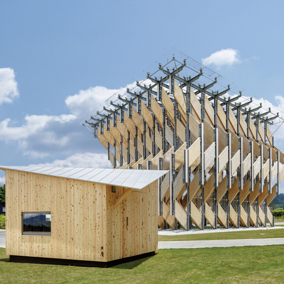 そして2018年6月、コラボ商品第1弾『小屋のワ』が完成。ガルバリウム鋼板の壁には職人の手作業による模様が施され、内装には岡山産のヒノキを使用。小屋を連結させると、公共の軒下空間をつくれる設計になっていた。隈さんの発想と当社の技術力が融合した『小屋のワ』は、明治神宮外苑で行われたお披露目会を通じて多くのメディアに取り上げられ、話題を呼んだ。